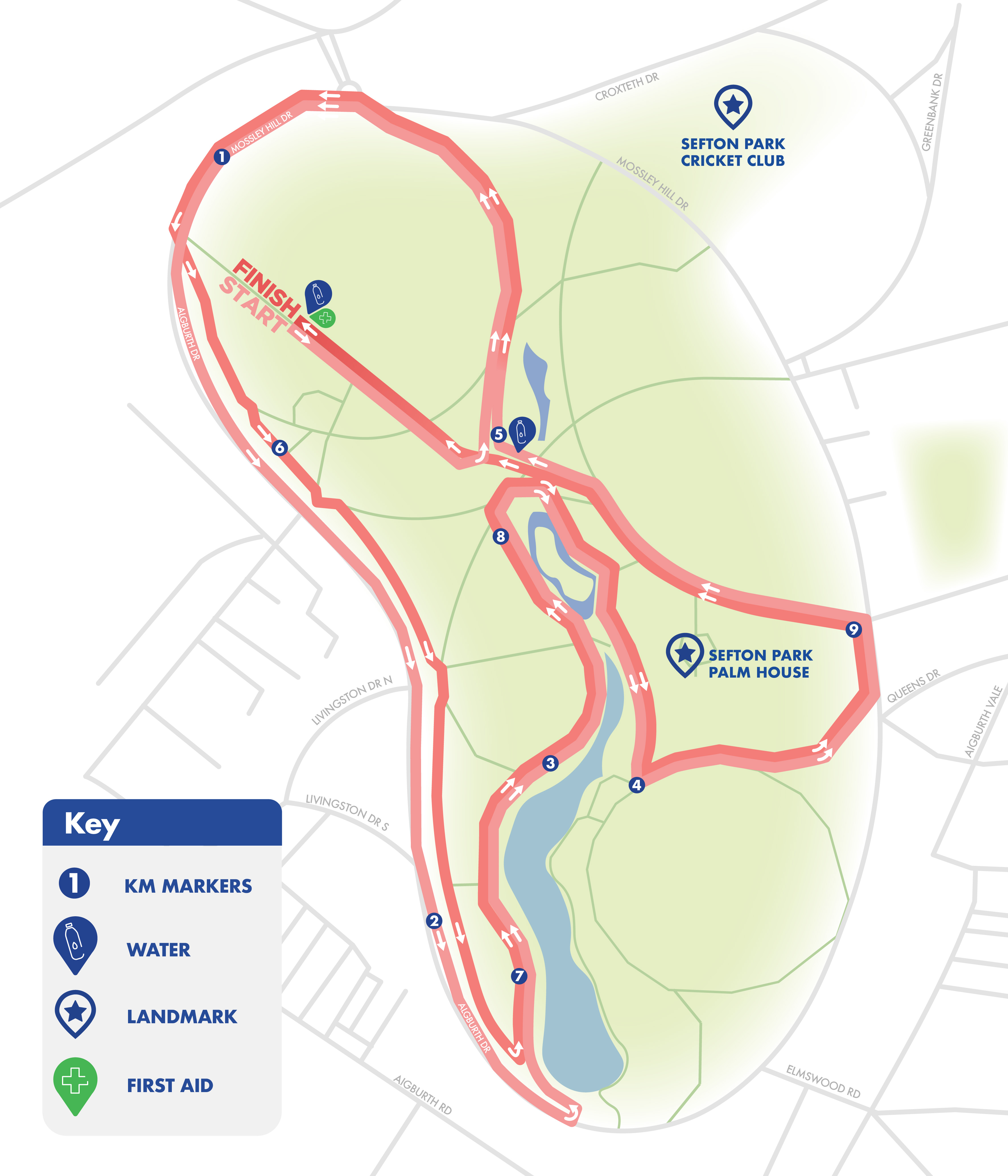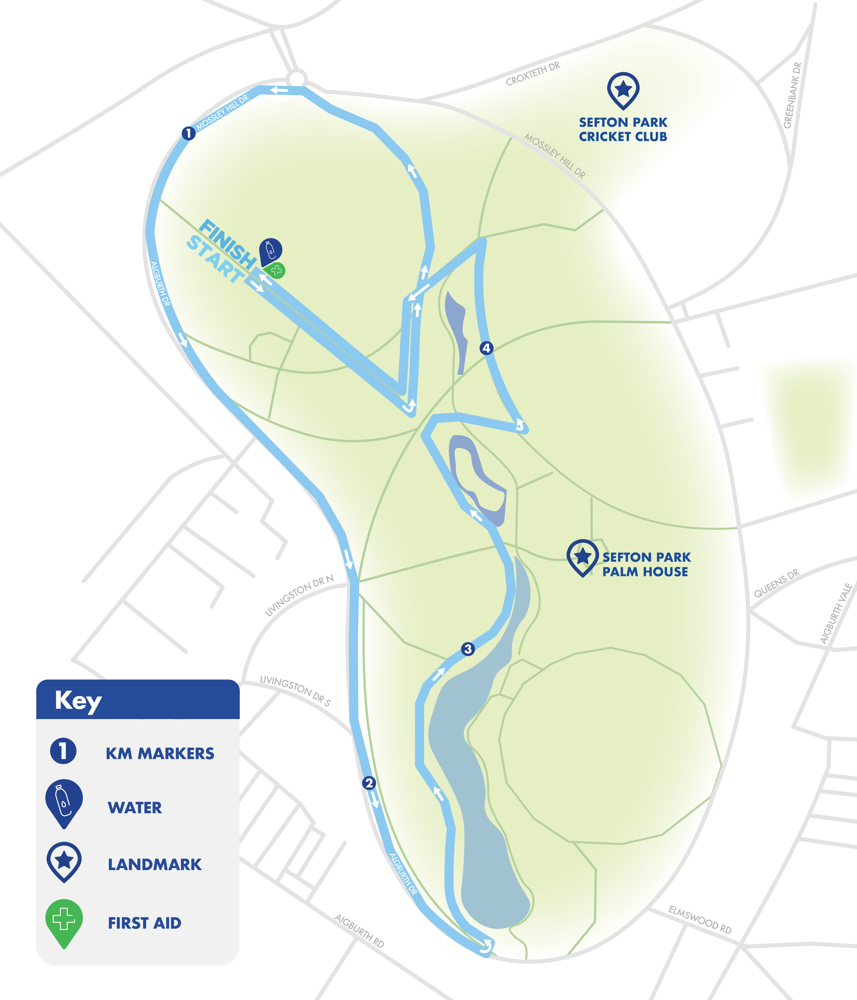 The entire race is contained in and around Sefton Park so there are no road closures on Aigburth Drive, Croxteth Drive or Mossley Hill Drive so parking will be available at these locations.