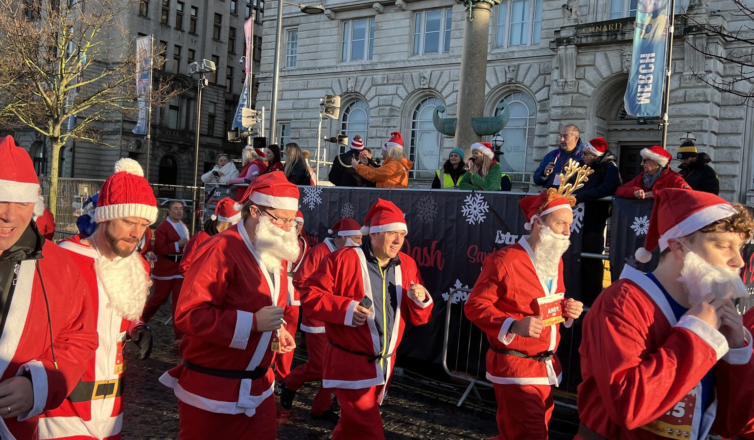 The BTR Liverpool Santa Dash entry fee covers all costs to organise and deliver the event including road closures, safety measures, Santa suits, medals, goodie bags, and entertainment.